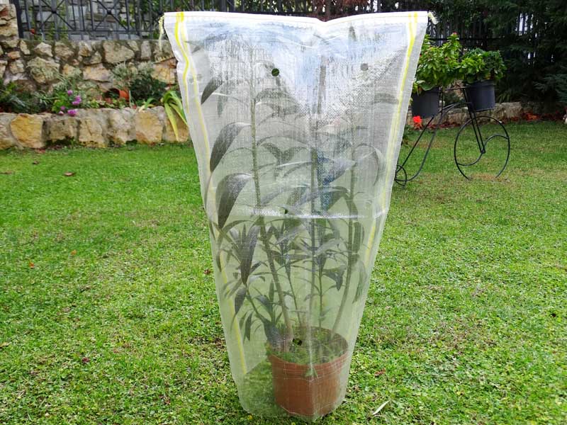 Κάλυμμα από πολυαιθυλένιο σε μορφή σάκου για την προστασία των φυτών από τα χιόνια την παγωνιά και το κρύο .  Έχει μήκος 83 CM  με πλάτος 53 CM , είναι με τρύπες το ναύλον οπότε το φυτό αναπνέει κανονικά και δεν κρατάει υγρασία . ιδανικό για τις γλάστρες σε μπαλκόνι και τον κήπο.