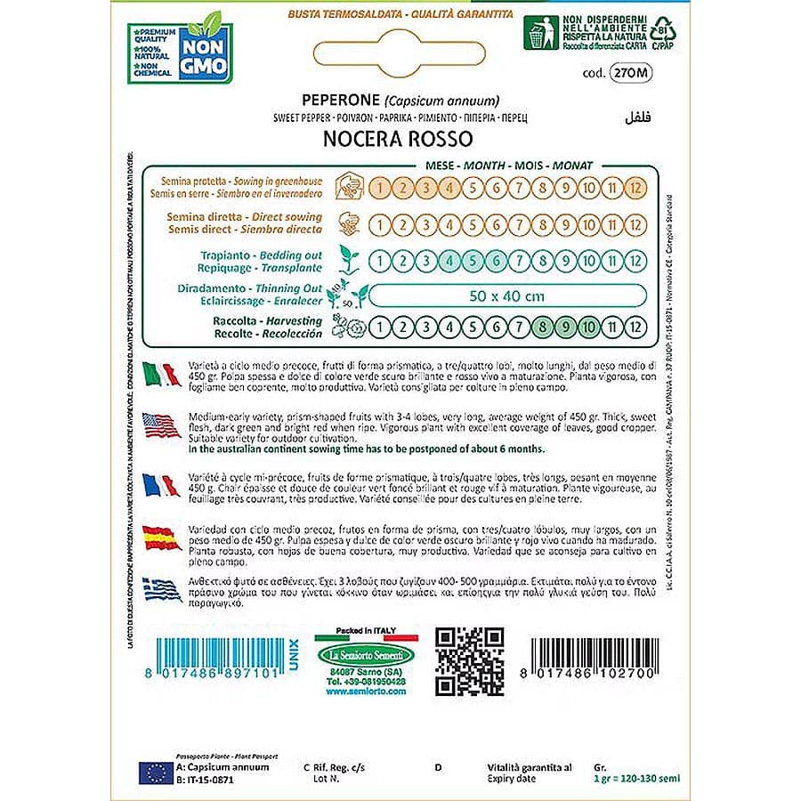 Η πιπεριά Nocera Rosso είναι ποικιλία μέσου–πρώιμου κύκλου, κατάλληλη για καλλιέργεια σε ανοιχτά χωράφια. Παράγει πρισματικούς, μακριούς καρπούς με 3-4 λοβούς, μέσου βάρους 400-500 γρ., με παχιά, γλυκιά σάρκα. Οι καρποί είναι αρχικά πράσινοι και γίνονται έντονα κόκκινοι όταν ωριμάσουν.