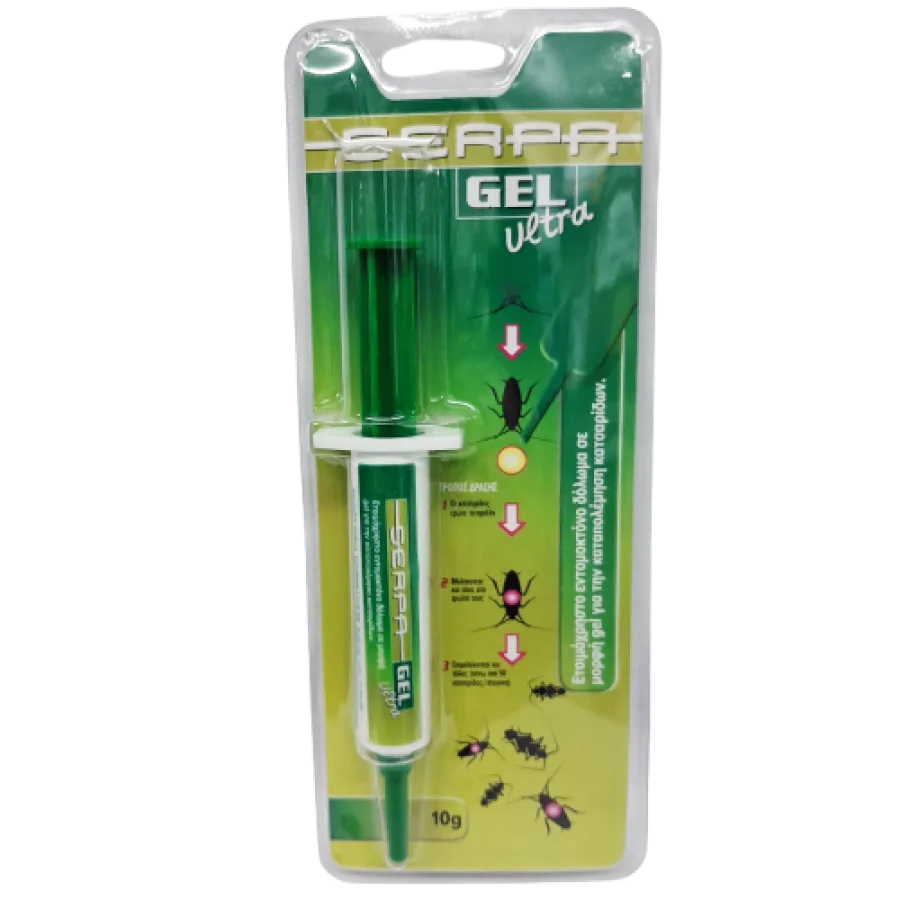 To Serpa Gel Ultra αποτελεί ένα επαγγελματικό εργαλείο απεντόμωσης, εξαιρετικά ελκυστικό για όλα τα είδη κατσαρίδων που συναντώνται σε εσωτερικούς χώρους. Η δράση του βασίζεται στο φαινόμενο “Domino”, όπου οι μολυσμένες κατσαρίδες επιστρέφουν στη φωλιά και επιμολύνουν τον υπόλοιπο πληθυσμό.
