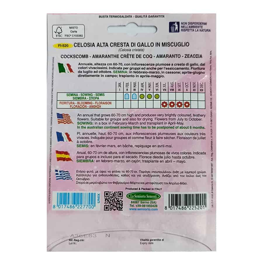 Ποικιλία σελοσίας με ψηλό αναπτυσσόμενο φυτό που φτάνει τα 60-70 εκ. Τα άνθη έχουν πυκνή, «πουπουλένια» υφή και έντονα, λαμπερά χρώματα, προσφέροντας εντυπωσιακή εμφάνιση σε παρτέρια και ανθοσυνθέσεις. Κατάλληλη επίσης για αποξήρανση και χρήση σε διακοσμητικά. Η σπορά γίνεται σε μικρά κιβώτια τον Φεβρουάριο-Μάρτιο, με μεταφύτευση στην ύπαιθρο τον Απρίλιο-Μάιο.