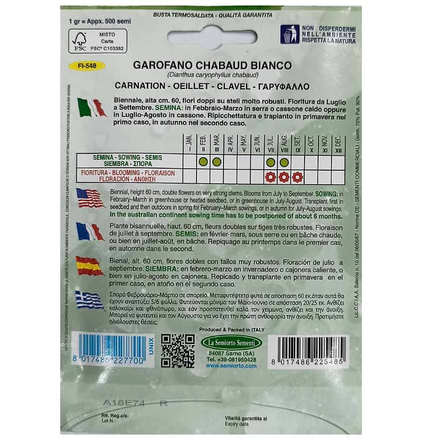 ΣΠΟΡΟΣ ΓΑΡΥΦΑΛΛΟ GAROFANO CHABAUD BIANCO (Dianthus caryophyllus chabaud)