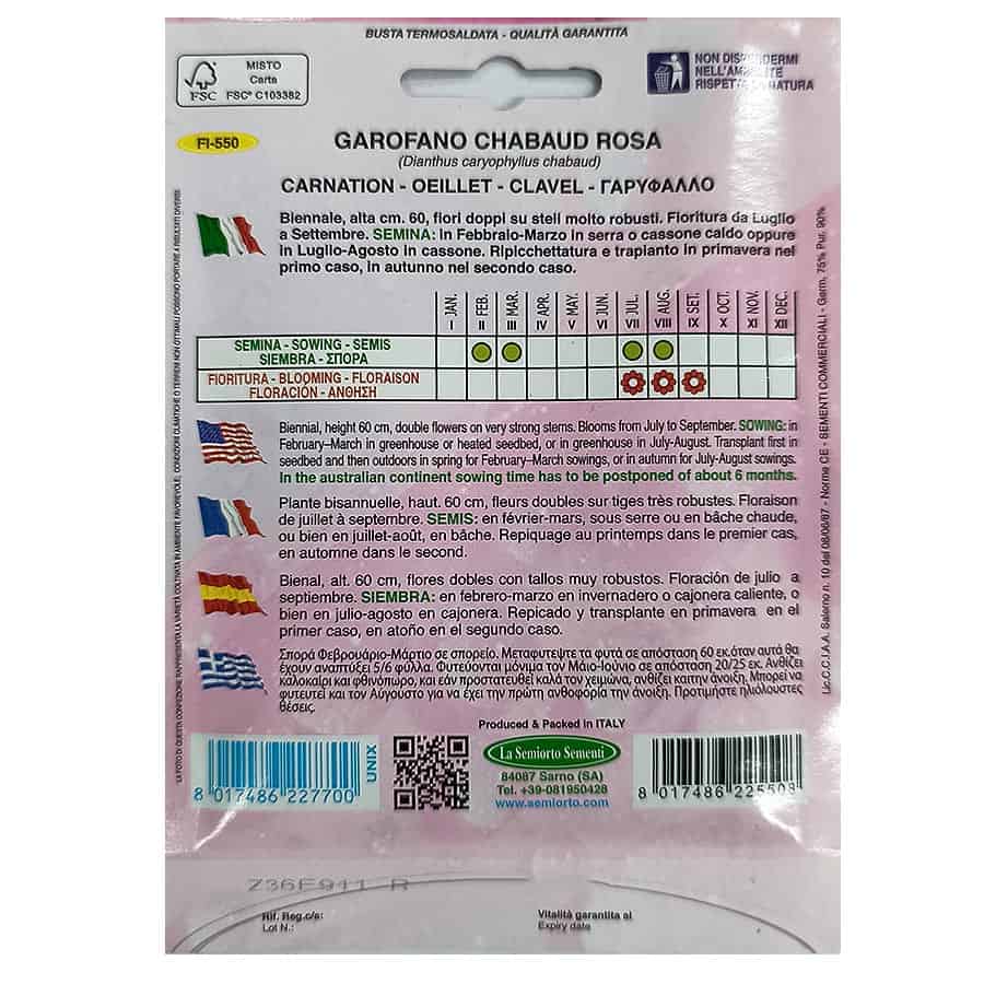 Ποικιλία γαρύφαλλου με μεγάλα ροζ διπλά άνθη, ιδανική για ανθοκομία και διακοσμητικές συνθέσεις. Η σπορά γίνεται σε σπορείο τον Φεβρουάριο-Μάρτιο και τα φυτά μεταφυτεύονται όταν έχουν 5-6 φύλλα, σε απόσταση 60 εκ. Η μόνιμη φύτευση γίνεται τον Μάιο-Ιούνιο σε απόσταση 20-25 εκ. Υπάρχει δυνατότητα φύτευσης τον Αύγουστο για άνθιση την επόμενη άνοιξη. Προτιμά ηλιόλουστες θέσεις και, με κατάλληλη προστασία τον χειμώνα, μπορεί να συνεχίσει την ανθοφορία έως και την άνοιξη.