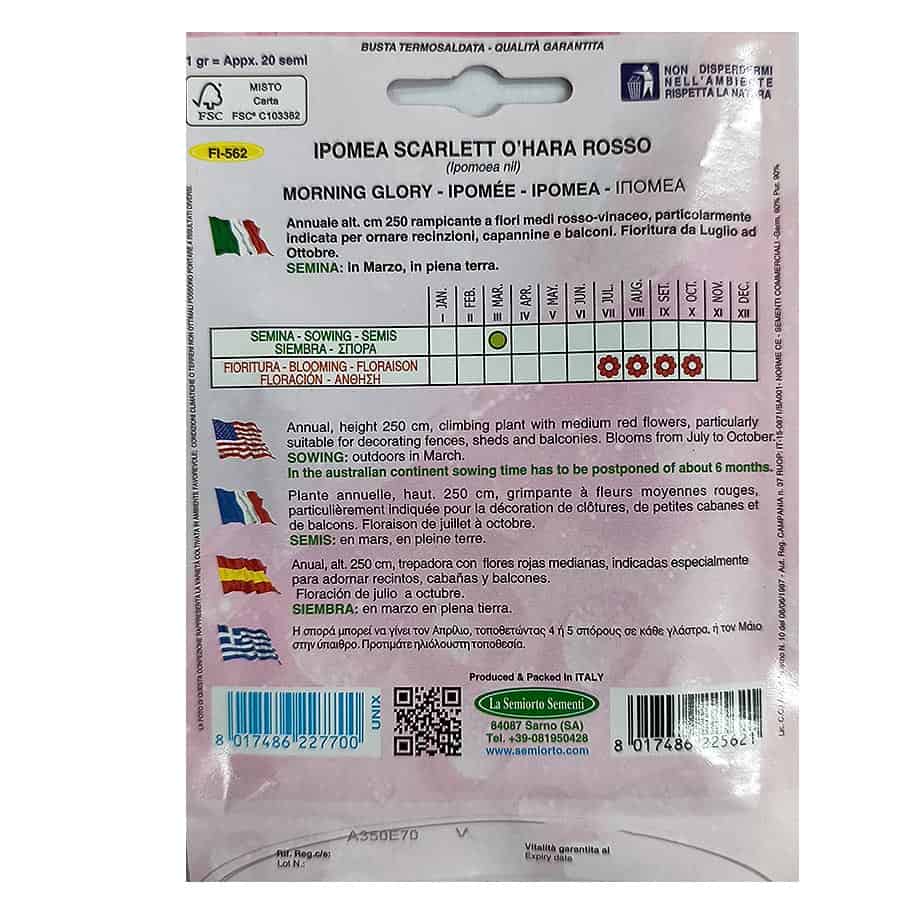 ΣΠΟΡΟΣ ΙΠΟΜΕΑ IPOMEA SCARLETT O’HARA ROSSO (Ipomoea nil)