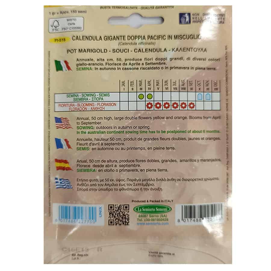 Ποικιλία καλέντουλας με μεγάλα, διπλά άνθη που εμφανίζονται σε διάφορες αποχρώσεις. Το φυτό φτάνει σε ύψος περίπου 50 εκ. και είναι ιδανικό για παρτέρια, ανθοσυνθέσεις και διακόσμηση κήπου. Ανθίζει συνεχώς από τον Απρίλιο έως τον Σεπτέμβριο, προσφέροντας πλούσιο και εντυπωσιακό θέαμα. Η σπορά μπορεί να γίνει στην ύπαιθρο είτε το φθινόπωρο είτε την άνοιξη.
