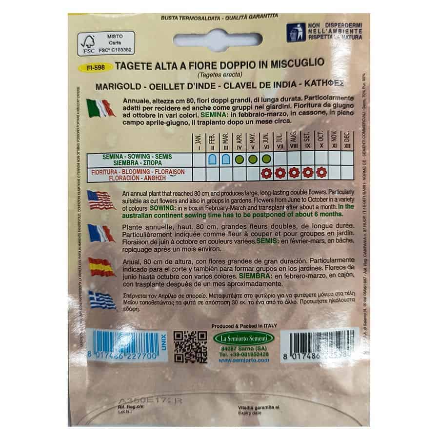 Ετήσιο φυτό που φτάνει σε μεγάλο ύψος και παράγει πλούσια, διπλά άνθη σε έντονα χρώματα, ιδανικά για παρτέρια, συνθέσεις και εντυπωσιακά σημεία στον κήπο. Η σπορά γίνεται σε σπορείο τον Απρίλιο, με μεταφύτευση στα τέλη Μαΐου σε απόσταση περίπου 30 εκ. μεταξύ των φυτών, σε ηλιόλουστη θέση και καλά στραγγιζόμενο έδαφος, για πλούσια και συνεχή ανθοφορία κατά τη διάρκεια του καλοκαιριού.