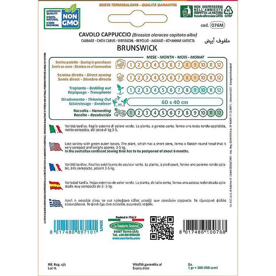 Το λευκό λάχανο Brunswick (Brassica oleracea capitata alba) είναι μια σύγχρονη ποικιλία με επίπεδο, συμπαγές κεφάλι και πράσινα εξωτερικά φύλλα. Το φυτό χαρακτηρίζεται από καλή αντοχή, σταθερή ανάπτυξη και υψηλής ποιότητας κεφάλια, κατάλληλα για φρέσκια κατανάλωση, σαλάτες, μαγείρεμα ή μεταποίηση σε τουρσί.