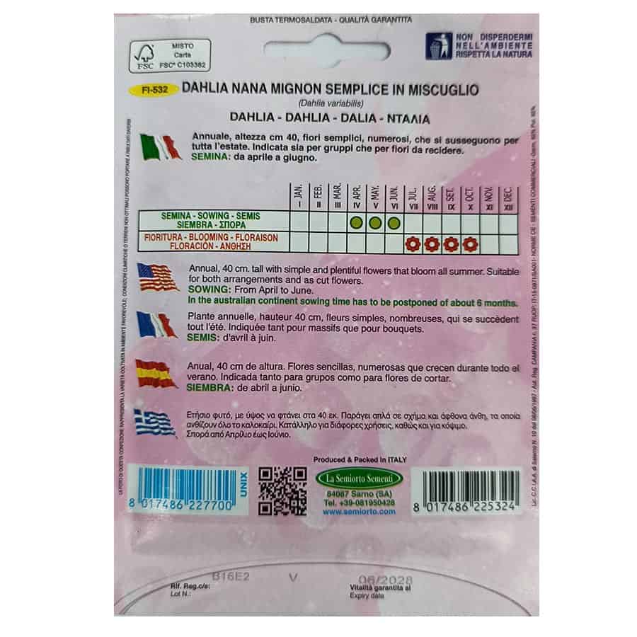 ΣΠΟΡΟΣ ΝΤΑΛΙΑ DAHLIA NANA MIGNON SEMPLICE IN MISCUGLIO (Dahlia variabilis)