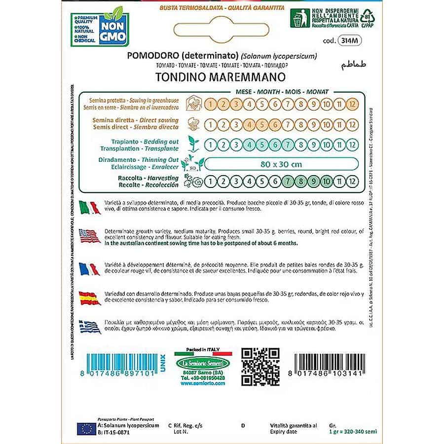 Tondino Maremmano είναι μία ποικιλία ΝΤΟΜΑΤΑΚΙ ημιαναρριχώμενη, γνωστή για την παραγωγή μικρών, στρογγυλών καρπών με ομοιόμορφο μέγεθος και μέση ωρίμανση. Οι καρποί ζυγίζουν περίπου 30-35 γρ., έχουν ζωηρό κόκκινο χρώμα και εξαιρετική συνέπεια σάρκας, με γλυκιά και ευχάριστη γεύση.