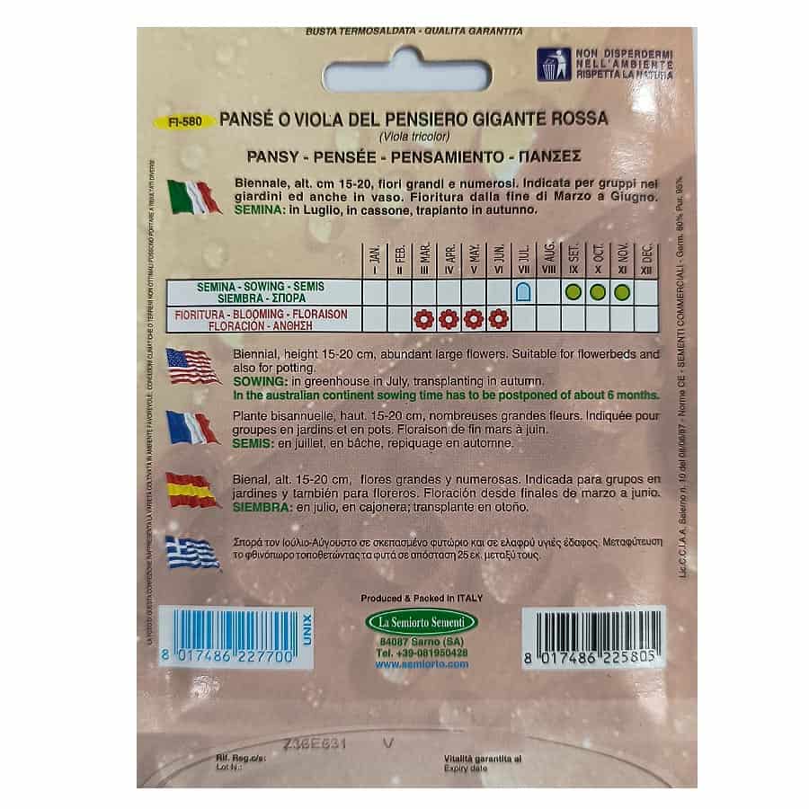 ΣΠΟΡΟΣ ΠΑΝΣΕΣ PANSE O VIOLA DEL PENSIERO GIGANTE ROSSA (Viola tricolor)