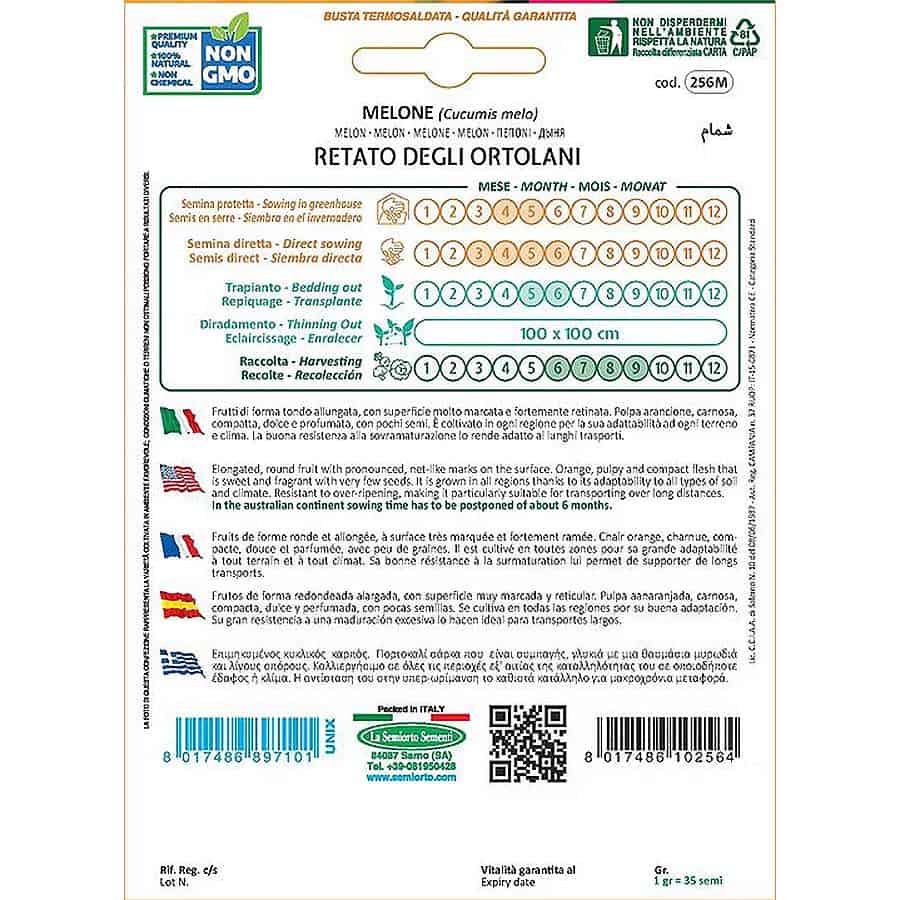 Το Πεπόνι Retato degli Ortolani είναι μια από τις πιο αξιόπιστες και ευπροσάρμοστες ποικιλίες πεπονιού, καλλιεργούμενο παντού λόγω της ικανότητάς του να προσαρμόζεται σε διαφορετικά εδάφη και κλιματικές συνθήκες. Οι καρποί έχουν επιμηκυμένο–στρογγυλό σχήμα, με έντονη, χοντρή δικτύωση στην επιδερμίδα, χαρακτηριστικό των ποιοτικών πεπονιών τύπου “retato”.