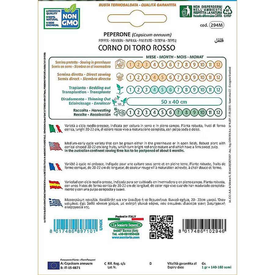 Η ποικιλία Corno di Toro Rosso είναι μια μεσοπρώιμη ποικιλία ΦΛΩΡΙΝΗΣ με υψηλή παραγωγικότητα. Το φυτό είναι ισχυρό και ανθεκτικό, αναπτύσσεται καλά τόσο σε θερμοκήπιο όσο και σε υπαίθριο χώρο.