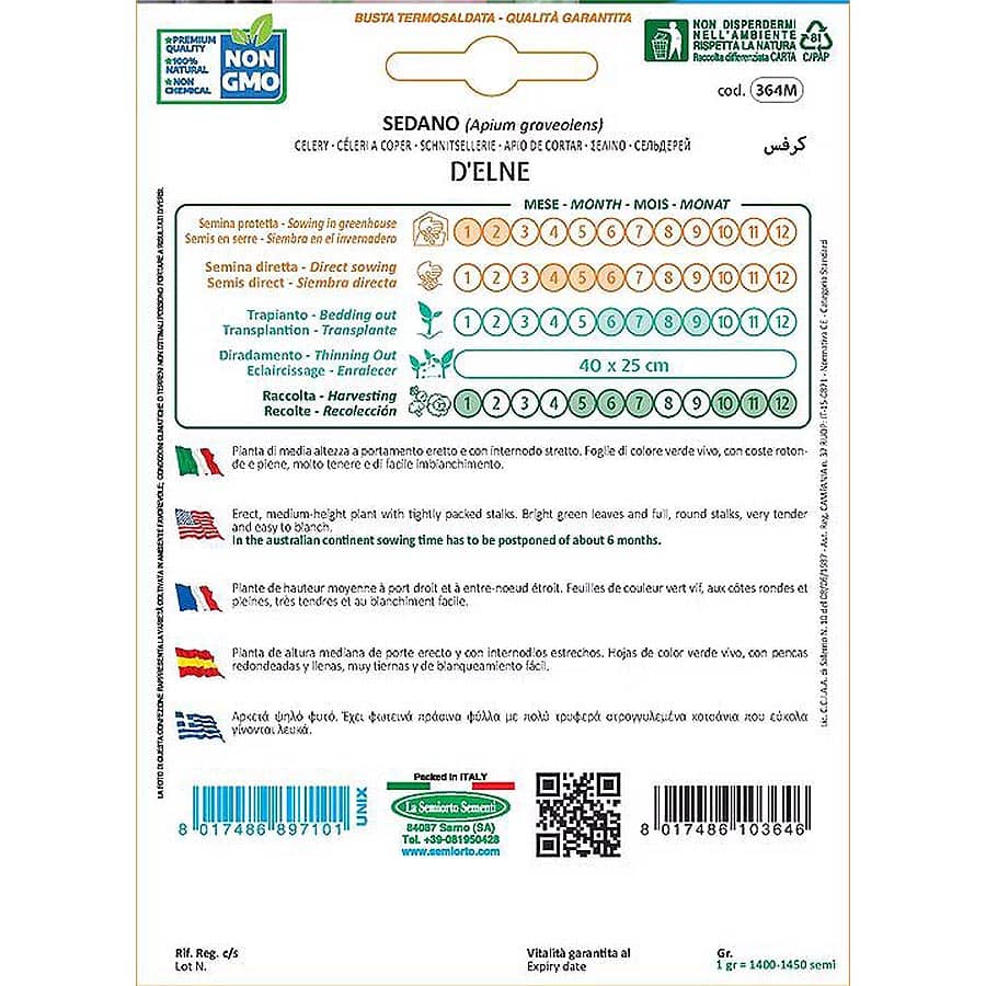 Αρκετά ψηλό φυτό με ζωηρή ανάπτυξη και πλούσιο φύλλωμα. Τα φύλλα έχουν έντονο πράσινο χρώμα, ενώ τα κοτσάνια είναι στρογγυλεμένα και ιδιαίτερα τρυφερά, κατάλληλα για κατανάλωση φρέσκα ή μαγειρεμένα. Η ποικιλία αυτή ξεχωρίζει για το άρωμα και τη γεύση της, καθιστώντας την ιδανική επιλογή για σούπες, σαλάτες και παραδοσιακές συνταγές. Καλλιεργείται εύκολα και προσφέρει σταθερή παραγωγή, αποτελώντας αξιόπιστη λύση τόσο για ερασιτεχνικούς όσο και για πιο απαιτητικούς κήπους.